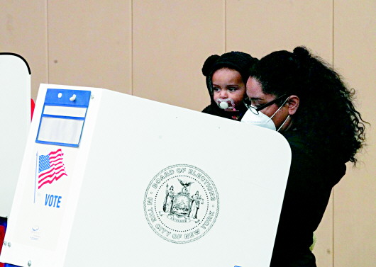 11月1日,选民在美国纽约一个投票站参加提前投票。 新华社发