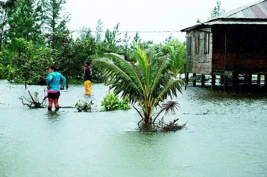 11月3日,在尼加拉瓜瓦瓦,一名居民站在因飓风导致的洪水中查看房屋。近日,飓风“埃塔”影响尼加拉瓜和洪都拉斯等中美洲国家,带来强风和强降水。 新华
