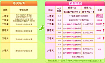 除了大家最关心的头奖奖金之外,新7星彩在“固定奖”方面也给大家带来了足够多的惊喜——三至五等奖奖金均有较大幅度提升,具体为:三等奖由1800元增至3000元;四等奖由300元增至500元;五等奖由20元增至30元。