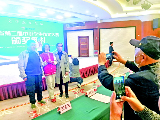 获奖学生在拍照留念。 齐鲁晚报·齐鲁壹点记者 张中 摄