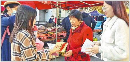 工作人员向群众发放民法典知识读本。