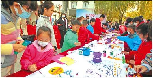 世界脐带血日文化周主题公益活动暨齐鲁志愿者系列公益活动启动仪式现场,26名青少年共绘十米长卷。 齐鲁晚报·齐鲁壹点记者 王鑫 摄