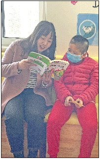 志愿者陪孩子同读一本书。
