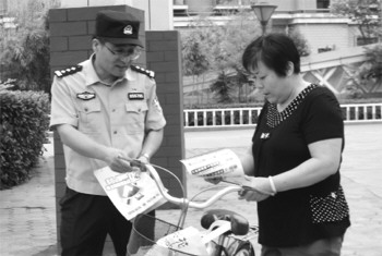 于培雪在值勤中向群众普及安全知识。