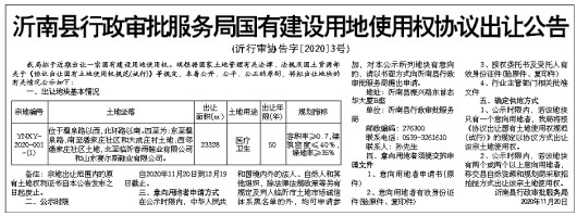 沂南县行政审批服务局国有建设用地使用权协议出让公告