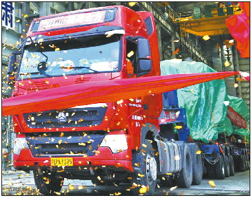 火箭运载车“撞彩”后驶出海阳港。