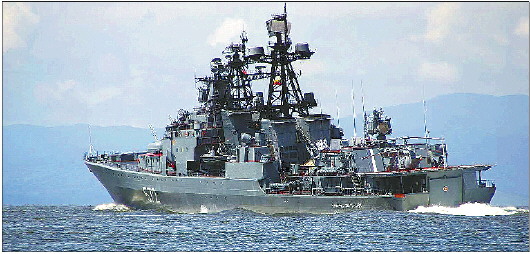 俄海军“维诺格拉多夫海军上将”号反潜驱逐舰。 资料图