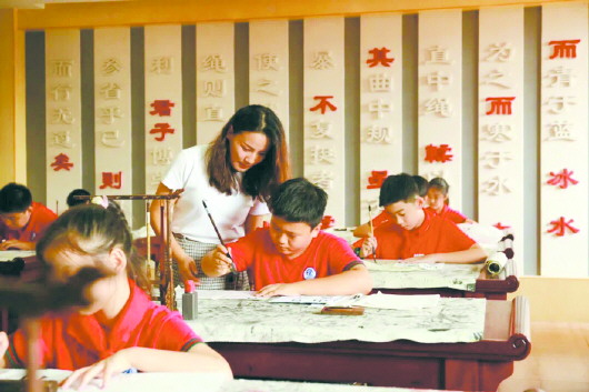 济南市市中区泉海小学开展书法教育。