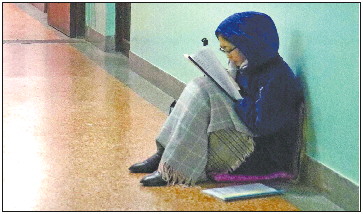 怕影响别人,在教室走廊里复习背诵。