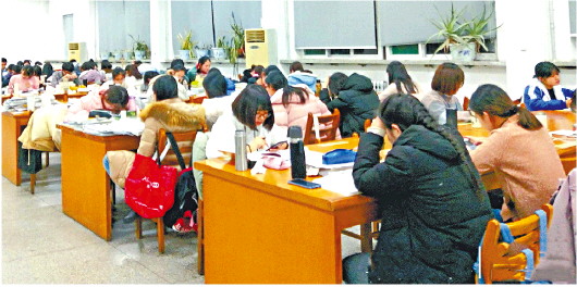 山东师范大学自习室内,备考学子们在抓紧时间复习。