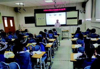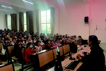 “青春”讲座 为了加强青春期教育,指导学生穿越青春的迷茫,近日,威海九中聘请了心理咨询专家于晓东老师对即将进入或已经进入青春期的初一女生进行青春期专场知识指导讲座。(孙英姿)