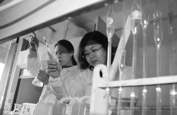 刘娟(右)在和同事一起检测环境样本。