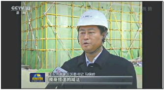 区委书记马保岭在项目工地接受中央电视台新闻联播采访。