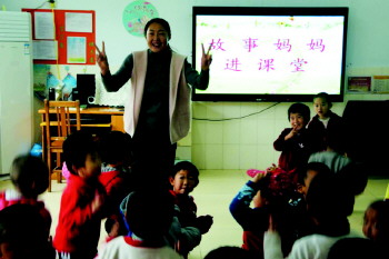 沂源县悦庄镇中心幼儿园开展“故事妈妈”进课堂活动。