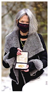 露易丝·格丽克展示诺贝尔文学奖奖章