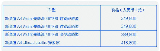 奥迪A4旅行家族官方指导价: