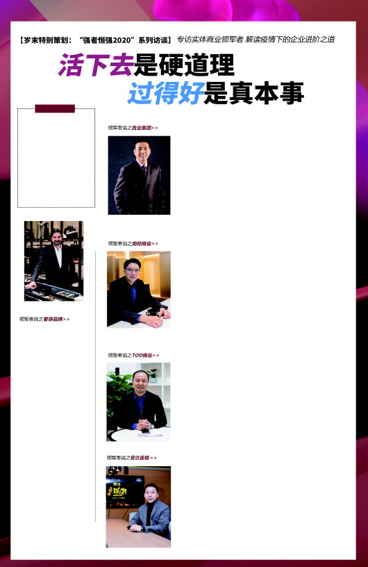过山车似的2020年,实体商业消费市场受到前所未有的冲击,一些根基不稳的企业被甩出赛道,黯然收场。但同时也有一些企业品牌,在与疫情“正面刚”的一年里,调整方向,苦练内功,修炼出了自身的“进阶术”,甚至化危为机,逆风破浪开新局,为未来开启了无限可能。