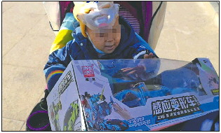 齐鲁晚报·齐鲁壹点记者将两件崭新的羽绒服塞到了牟熠的小童车里面,并告诉牟聪,每一天都有爱心市民献爱心,希望看到牟熠越来越好。记者还把绿巨人和变形金刚玩具礼盒送到了牟熠手里,接到礼物,牟熠开心地问:“变形金刚能不能变成大汽车啊?哇哇哇,太漂亮了!我好喜欢噢。谢谢!”