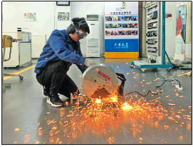 袁强在练习切割技术。