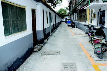 社区党委书记、居委会主任魏宪金告诉记者,物资局小区一共有8栋宿舍楼,建于1986年前后,此外还有两栋平房,建于1956年前后,“社区接管小区的时候,道路两旁都是乱搭乱建,宿舍楼楼道里杂物堆积如山,就咱们现在脚下这条水泥路,当时是石板路,破损十分严重,而且石板下面就是2米深的下水道,居民出行都要低着头小心翼翼地走。”