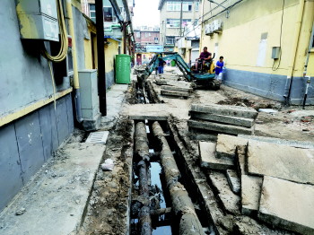 施工期间对小区地下管网重新进行了铺设。