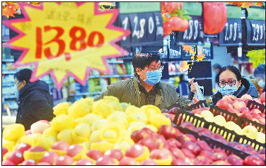 1月11日,顾客在杭州一家超市选购水果。当日,国家统计局发布数据,2020年全年“居民消费价格涨幅3.5%左右”的物价调控目标较好实现。 新华社发