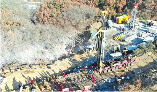 1月10日14时,栖霞笏山金矿发生爆炸事故,22名工人被困于井下600多米位置。救援按照“两条腿”并行的思路紧张进行,一方面加快清理回风井井筒障碍物,另一方面加快地面打钻,开辟生命通道。救援现场共布置6个钻孔进行施救,此次贯通的是3号钻孔。