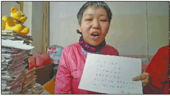 “过了腊八就是年,一年一岁一团圆,齐鲁晚报来敲门,事事粥到总是春。”钟倩用左手工整地写下了她的心情,这个冬天因为大家的爱而温暖,对于生活的希望和信心因为这份幸福的敲门而重新开启。