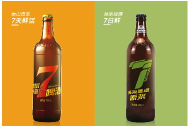 左图为泰山原浆“7天鲜活”瓶体,右侧为燕京啤酒“7日鲜”瓶体。