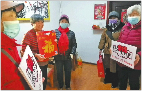 “让幸福来敲门”,志愿者们为社区居民送上新春祝福。
