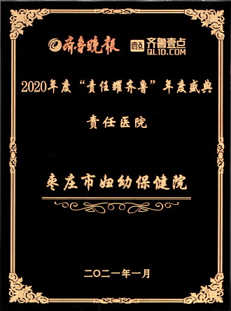 1月17日,首届山东医疗健康融媒传播论坛暨“责任耀齐鲁”颁奖典礼在山东新闻大厦举行。活动现场颁发了“2020年度责任耀齐鲁·责任医院、责任科室”等奖项。其中,枣庄市妇幼保健院荣获2020“责任耀齐鲁”年度盛典责任医院,同时也是枣庄市唯一一家荣获该荣誉奖项的医院,患者满意率为99.18%。 (图/文 田思东 张兴文)