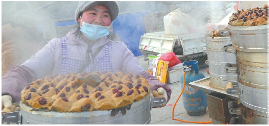 他们家除了卖年糕,还卖小米的衍生产品,比如济南人爱喝的茶汤等等。刚结婚的小两口在父母指导下,很快掌握了做年糕的技术。他们做出来的年糕干净卫生,为了符合老人口味,里面一点儿糖也不放,全靠枣、米自身带的香甜来提味。再加上笼屉下面铺着南部山区采摘回来的槲叶,蒸出来的年糕软糯而又清香,深受食客们喜爱。
