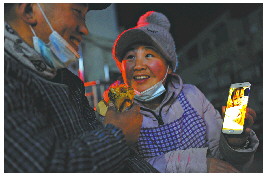 ▲夜深了,小两口送走工人们,才能跟孩子们视频聊聊天。