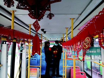 元宵佳节即将至,公交车厢闹元宵。2月22日,“全国巾帼文明岗”青岛121路公交车里,点亮了五彩缤纷的花灯,挂上了生动有趣的灯谜,邀市民乘客一起逛灯会、猜灯谜、闹元宵,渲染节日氛围,擦出传统节日的“时代火花”。