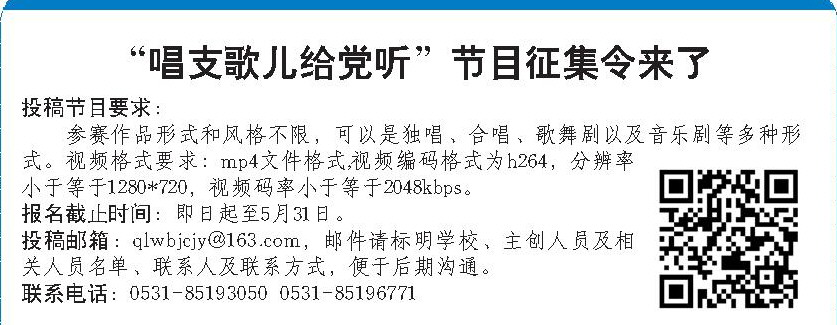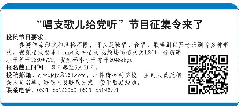 投稿邮箱:qlwbjcjy@163.com,邮件请标明学校、主创人员及相关人员名单、联系人及联系方式,便于后期沟通。