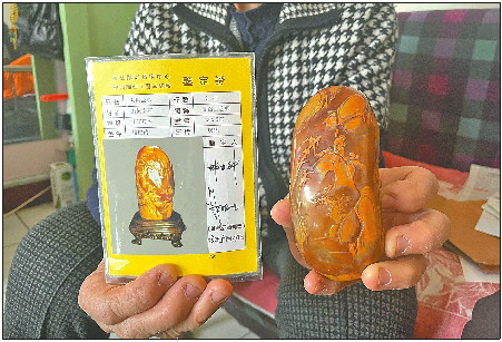 赵芳(化名)换回的田黄石和证书。