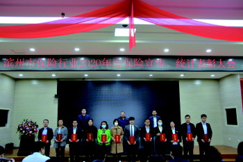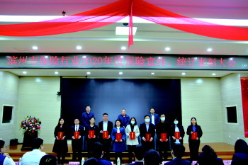 随后,为2020年度宣传工作先进单位、优秀通讯员、优秀统计员颁奖。优秀通讯员人保财险滨州市分公司姚洪强、中国人寿滨州分公司王俊凯,优秀统计员安盛天平财险滨州中支刘耀平、新华人寿滨州中支王久乙分别就保险宣传、统计工作进行了交流发言。