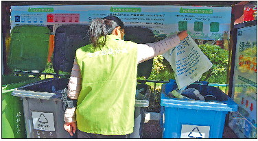 穿上绿色的专用马甲后,许女士拿起专用的垃圾钳,一边跟熟悉的邻居打招呼,一边盯着大家手里的袋子。记者注意到,这里不少居民都知道分门别类投放垃圾,但也有少数人满不在乎。