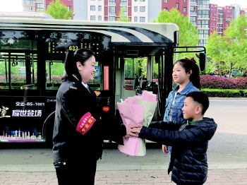 5月9日是母亲节。该怎么向赋予我们生命的人表示感谢?市北区敦化路街道携手市北区中央商务区和“红色合伙人”卓越大融城举办了“‘花’点时间,爱在当‘夏’”系列母亲节活动,8日当天组织了专业的插花老师教妈妈们艺术插花;城阳巴士374路驾驶员矫卫庆和班组成员布置了感恩母亲节的主题车厢;633路驾驶员高慧鹏则是在开进海尔工业园公交站时,收到了一双儿女亲手送上的鲜花,她更是笑开了花。