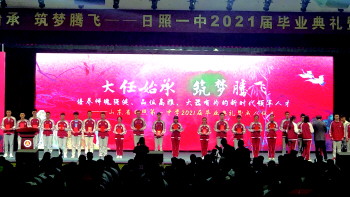 在庄严的国歌声中,日照一中2021届毕业典礼暨成人仪式正式拉开帷幕。日照一中党委书记、校长尚洪兵在典礼上寄语高三学子,大任始承,希望同学们像树一样成长,成为家庭、民族的栋梁。心怀感恩,承担好一身责任,走稳、走好漫漫人生路;筑梦腾飞,希望同学们像雄鹰一样飞翔,成为母校、家乡的骄傲。在未来的征程中,自信乐观、奋斗不息,努力成为能够适应未来、引领未来、创造未来的高素质人才。