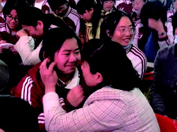 家长或抚摸学生脸庞,或紧紧握住孩子双手,学生轻轻道出对父母的爱意。多年来的关怀、陪伴与感激,一切尽在不言中。