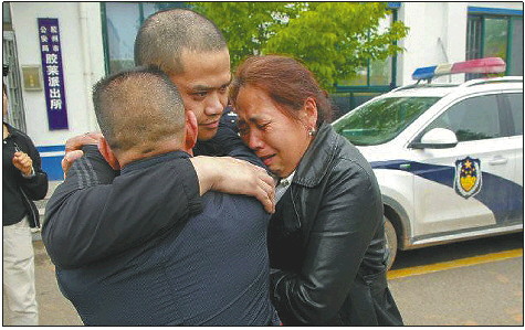 当天下午2点,柳某、李某夫妇在胶莱派出所见到了被拐卖的儿子杨某。压抑在心里多年的情绪,在这一刻释放,年近60岁的母亲泣不成声,与丈夫一起将小儿子抱入怀中。“我们瞎找了十几年,山里、山外两千多里,到处找,上班也在找,终于找到你了。”说着母亲一边哭一边拉开儿子的衣服,向民警展示了孩子背上的三颗痣,这一刻就连一旁的民警也忍不住落泪。