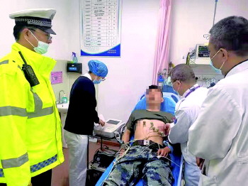 听完驾驶员的话,刘君建果断坐进驾驶室,一边将车辆移放至路边,一边通过手台向大队领导汇报,同时安排邹寿亭将执勤警车开至路边待命。车一停稳,刘君建马上将急病患者扶上警车,同时联系医院做好急救准备,警车一路闪着警报驶向烟台山医院南院。