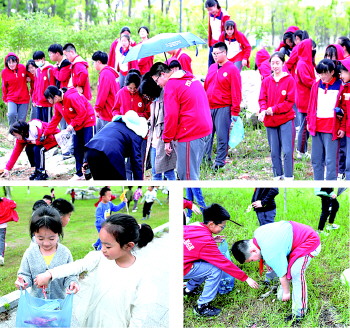 全校师生一同步行到河边指定区域,活动正式开始。到达公园,同学们纷纷拿出准备好的垃圾袋,在班主任的带领下分别在不同区域进行垃圾捡拾。公园中的垃圾主要是塑料水瓶、食品包装纸、烟头、易拉罐等,同学们用一小时清理了近千米长草坪、湿地,并在老师的指导下进行垃圾分类。