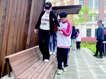 为促进孩子和家深层次的交流,日前,青岛李沧区实验初级中学在七年级三班开展了亲子盲行体验活动。在黑暗的世界里,完全非语言的条件下,只有亲子的互相指引,一场亲子间的默契游戏,悄然开启。