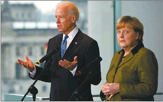 拜登(左)与默克尔。资料片
