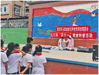 在普集中心小学,儿科医护人员为小学生们带来心肺复苏技能培训,气管异物现场急救以及传染病预防知识,孩子们围在医护人员周围,兴趣盎然、跃跃欲试,纷纷表示通过这场科普活动,度过了一个有意义的儿童节。