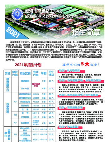 最近,威海市教育局批准,威海市高级技工学校(威海临港区职业中等专业学校)具备普通高中班开设条件,自2021年秋季开始,开设普高中班试点。2021年招生计划100人,普通高中80人,艺术生20人,纳入中心城区普通高中招生计划。此举注重学生发展,尊重学生的个性特点,丰富拓展学生成长路径,为初中毕业生希望接受更高层次的教育提供了新的机遇,让初中毕业生拥有更多自主选择升学与就业的机会,满足学生群众多样化的教育求学需求,全面提升学生群众对教育的满意度。学校以此为契机,积极探索职业教育与普通教育相互融通的多元化人才培养机制,满足社会对教育多样化的实际需求,为威海市教育综合改革积累宝贵经验。