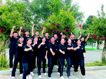 记者注意到,每个班级的学生们都穿上了自己的班服,“这些班服都是学生们自己设计的。”李涛老师介绍,每个学生都是班级不可或缺的一分子,穿上班服学生们也更加充满斗志。