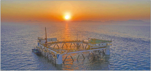 6月5日,烟台市海洋牧场“百箱计划”首座深海职能智能网箱平台“经海001号”在长岛南隍城东部海域顺利安置。作为亚洲最大的深海智能网箱,它的正式投用,填补了我国在30米水深养殖水域座底式网箱养殖空白,标志着烟台现代海洋渔业规模化、生态化、智能化养殖掀开了新篇章。